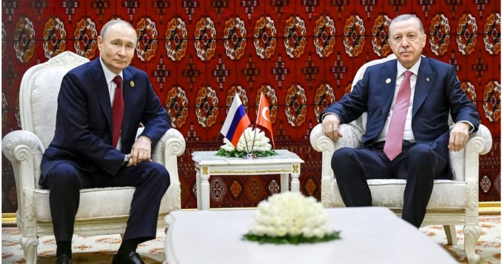রাশিয়ার প্রেসিডেন্ট ভ্লাদিমির পুতিনের সঙ্গে বৈঠকের পর ইউক্রেন-রাশিয়া যুদ্ধের সমাপ্তির জন্য আশার কথাগুলো শোনা গেল তুরস্কের প্রেসিডেন্ট রিসেপ তাইয়্যেপ এরদোয়ানের কাছ থেকে। শুক্রবার তুর্কমেনিস্তানে অনুষ্ঠিত এই বৈঠক শেষে তিনি বলেন, রাশিয়া ও ইউক্রেনের মধ্যকার সংঘর্ষের অবসান খুব দূরে নয়। তিনি বর্তমানে একটি শান্তি পরিকল্পনা নিয়ে কাজ করছে এবং এই পরিকল্পনার বিষয়ে তিনি ওয়াশিংটনের প্রেসিডেন্ট ডোনাল্ড ট্রাম্পের সঙ্গে আলোচনা করতে আগ্রহী।