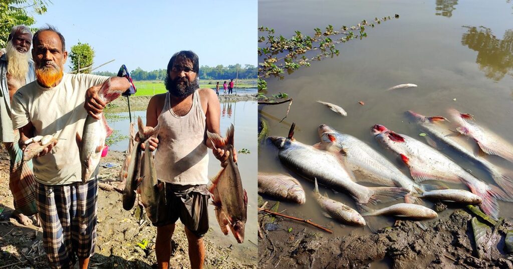 সোমবার সকালে, বিলের পানিতে মাছ ভাসতে দেখে স্থানীয়রা দ্রুত সমিতির সদস্যদের খবর দেন। পরে তারা ঘটনাস্থলে এসে দেখতে পান, পুকুরে থাকা মাছসহ বিভিন্ন প্রজাতির মাছ মরতে মরতে ভাসছে।
