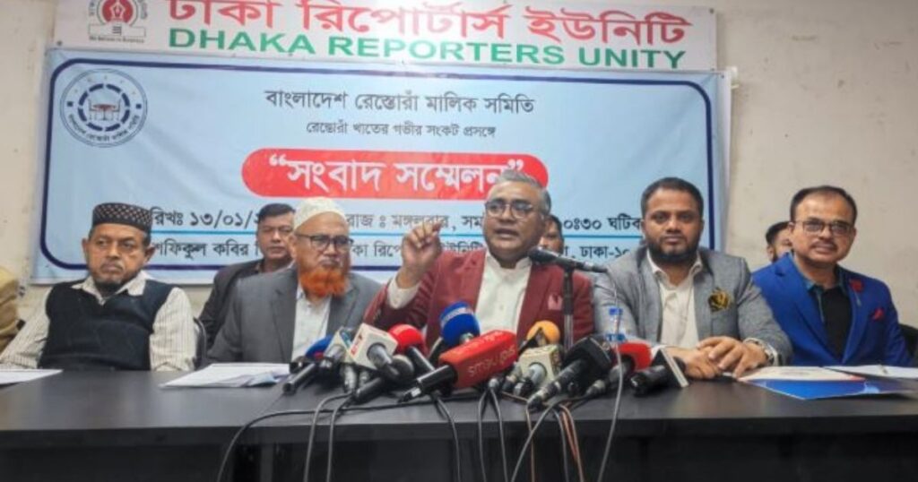 তীব্র গ্যাসের সংকট, ভাংচুর ও চাঁদাবাজিসহ ছয়টি গুরুতর সমস্যায় অভিযুক্ত বাংলাদেশের রেস্তোরাঁ খাত। এই সংকট সমাধানে সরকারকে দ্রুত কার্যকরী উদ্যোগ নেওয়ার জন্য দাবি জানিয়েছে রেস্তোরাঁ মালিকরা। তারা অভিযোগ তুলেছেন, শ্রমিক সংগঠনের নাম ব্যবহার করে নানা হুমকি, ভয়ভীতি এবং চাঁদাবাজি চালিয়ে অপ্রয়োজনীয় সুবিধা নেওয়া হচ্ছে। গতকাল মঙ্গলবার ঢাকা রিপোর্টার্স ইউনিটির শফিকুল কবির মিলনায়তনে এক সংবাদ সম্মেলনে এসব দাবি উপস্থাপন করেন তারা। সংগঠনের সভাপতি ওসমান গনি এবং মহাসচিব ইমরান হাসানসহ অন্যান্যরা এ সময় উপস্থিত ছিলেন।