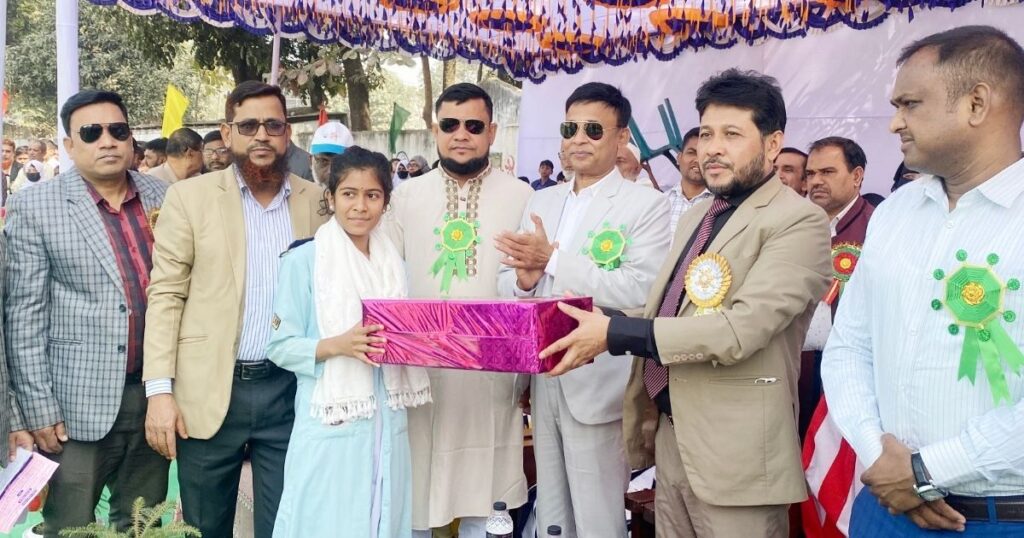 প্রধান অতিথি আরও বলেন, ‘নরসিংদী জেলায় উন্মুক্ত খেলাধুলার জন্য মাঠের সংখ্যা খুবই কম। এ কারণে খেলাধুলার মাঠগুলো যাতে বিনষ্ট না হয়, সেব্য দেখা দিতে সকলের দৃষ্টি আকর্ষণ করছি। অনুষ্ঠানের শেষে বিজয়ীদের মাঝে পুরস্কার বিতরণ করেন অতিথিরা।’
