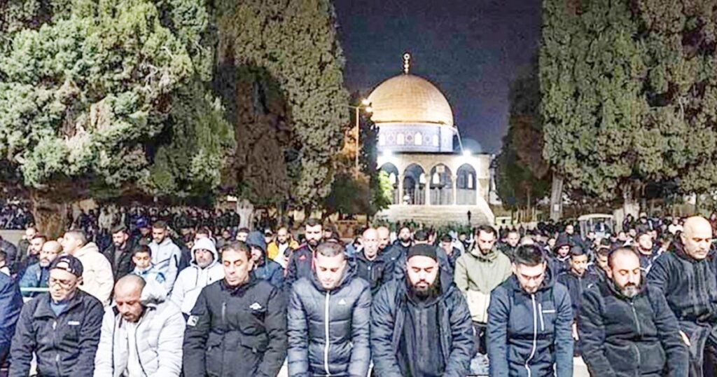 ফিলিস্তিনসহ মধ্যপ্রাচ্যের বেশিরভাগ দেশে বুধবার থেকে পবিত্র রমজান শুরু হওয়ায় মঙ্গলবার রাতেই রমজানের প্রথম তারাবিহ নামাজ অনুষ্ঠিত হয়। আল-আকসা মসজিদ প্রাঙ্গণে হাজারো ফিলিস্তিনি নামাজ পড়তে উঠেছিলেন, তবে সেখানে ইসরায়েলি বাধা-বিপত্তি ছিল।