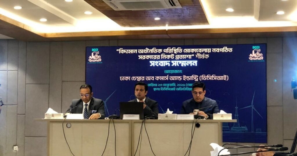 আজ ২৩ ফেব্রুয়ারি, সোমবার, রাজধানীর মতিঝিলস্থ ডিসিসিআই কার্যালয় ও অডিটোরিয়ামে এক সংবাদ সম্মেলনে এসব দাবি উত্থাপন করা হয়, যেখানে সভাপতিত্ব করেন সংগঠনের সভাপতি তাসকিন আহমেদ। তিনি জানান, দেশের বিভিন্ন ফ্যাক্টরিতে ট্রাক প্রবেশ এবং রফতানি বা ক্রয়ে চাঁদা নেয়ার পরিস্থিতি সাধারণ হওয়া গেছে। মানুষের জীবন ও ব্যবসায় এর কারণে ব্যাপক চাপ সৃষ্টি হচ্ছে।