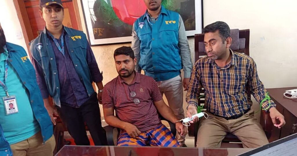 দুর্নীতি দমন কমিশন (দুদক) ফেনীর সোনাগাজী উপজেলায় এক লাখ টাকা ঘুষ নেওয়ার সময় উপজেলা প্রকল্প বাস্তবায়ন কর্মকর্তা (পিআইও) মোহাম্মদ আল সাঈদ এবং তাঁর এক কার্যসহকারীকে হাতেনাতে আটক করেছে। ঘটনাটি ঘটে বৃহস্পতিবার (২৬ ফেব্রুয়ারি) দুপুরে উপজেলার পিআইও কার্যালয়ে। এই দুই প্রতারকের মধ্যে রয়েছেন সংশ্লিষ্ট পিআইও মোহাম্মদ আল সাঈদ এবং কার্যসহকারী আবু নাসের।