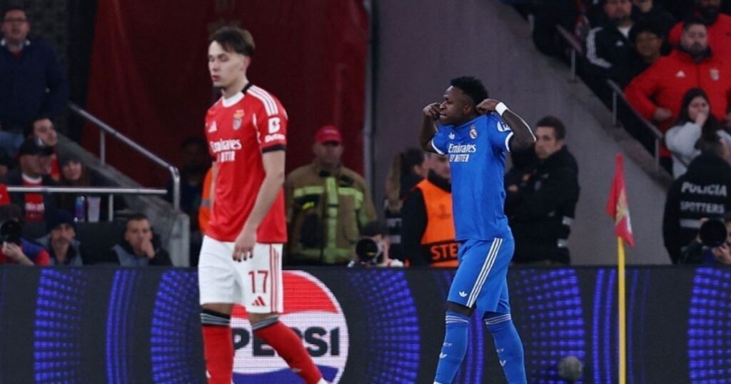 নিয়মিত ওই ম্যাচে মাদ্রিদে উপস্থিত ছিলেন তিন হাজারের বেশি বেনফিকা সমর্থক। সেখানে স্পষ্ট দেখা যায় বৈরী পরিস্থিতি; শুরুতেই ভিনিসিয়ুসের নাম ঘোষণা ও বল স্পর্শের সঙ্গে সঙ্গে গ্যালারিতে অবিরাম শিস ও অবজ্ঞাসূচক আওয়াজ শোনা যায়।