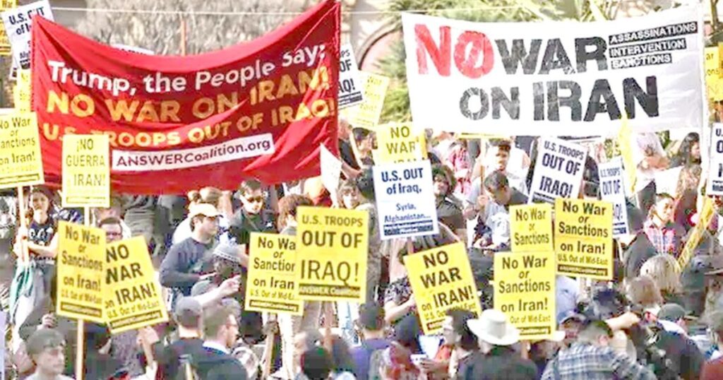ইসরায়েল ও যুক্তরাষ্ট্রের নিবিড় সামরিক অভিযানের দ্বিতীয় সপ্তাহে দেশজুড়ে সেই নীতির প্রতিবাদে উত্তাল হয়ে উঠেছে আমেরিকার শহরগুলো। গত সপ্তাহান্তে নিউইয়র্ক, ওয়াশিংটন ডিসি, লস এঞ্জেলেস, শিকাগোসহ অন্তত ৫০টি গুরুত্বপূর্ণ শহরে হাজার হাজার মানুষ রাস্তায় নেমে যুদ্ধ বন্ধ এবং শান্তি প্রতিষ্ঠার দাবি তুলেছেন।