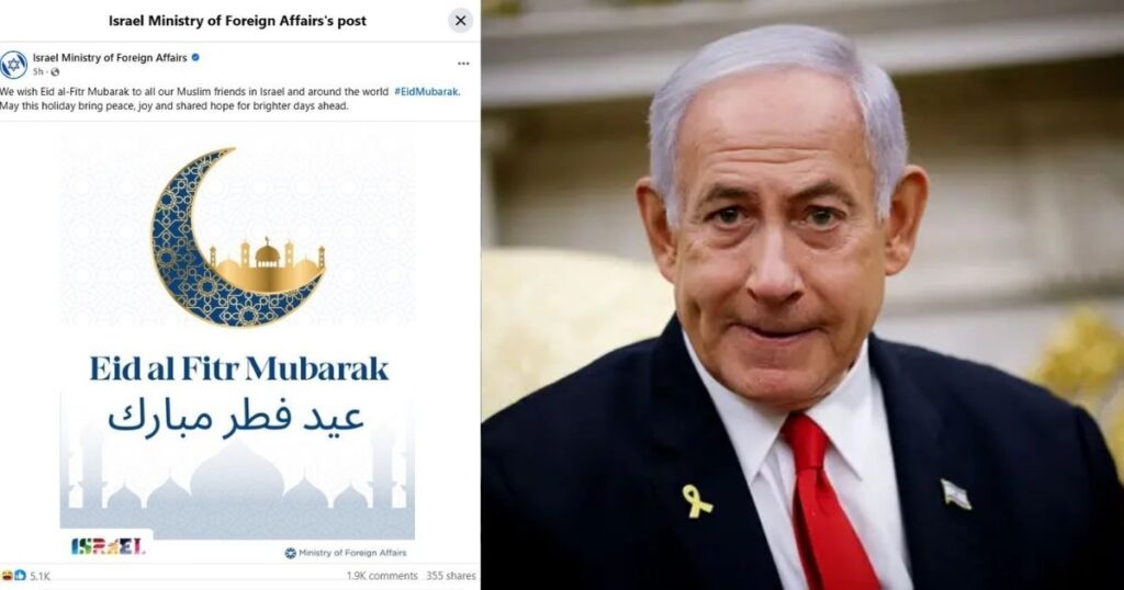 পোস্টে ইংরেজি ও আরবিতে ‘Eid Mubarak’ লেখা একটি বিশেষ কার্ড দেখা গেছে। ক্যাপশনে মন্ত্রণালয় লিখেছে, ‘আমাদের ইসরায়েলি ও বিশ্বের সব মুসলিম বন্ধুদের ঈদুল ফিতর মোবারক।’