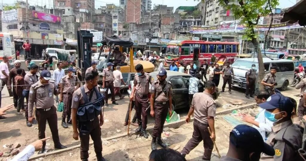 মহানগরীর ধোলাইখাল এলাকায় অবৈধ দখল তুলে ফুটপাত উদ্ধার করার অভিযান শুরু করেছে ঢাকা মেট্রোপলিটন পুলিশ (ডিএমপি)। বুধবার (১ এপ্রিল) বেলা ১১টায় ধোলাইখাল তিন রাস্তার মোড় থেকে লালবাগ জোন এই অভিযান শুরু করে। অভিযানে নেতৃত্ব দিচ্ছেন স্পেশাল মেট্রোপলিটন ম্যাজিস্ট্রেট আরিফুর রহমান।