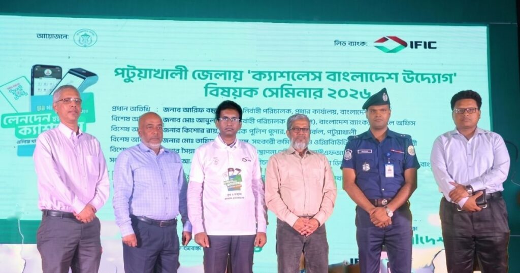 পটুয়াখালীতে অনুষ্ঠিত দু’দিনব্যাপী ‘ক্যাশলেস বাংলাদেশ উদ্যোগ’ সম্প্রসারণ বিষয়ক উদ্বুদ্ধকরণ কার্যক্রম সফলভাবে শেষ হয়েছে। এ আয়োজন বাংলাদেশ ব্যাংকের ডিজিটাল লেনদেনে উৎসাহ বৃদ্ধির দেশব্যাপী কর্মসূচির অংশ হিসেবে পরিচালিত হয় এবং এতে আইএফআইসি ব্যাংক পিএলসি লিড ব্যাংক হিসেবে নেতৃত্ব দেয়। কর্মসূচি চলেছিল ১৯ ও ২০ এপ্রিল ২০২৬ তারিখে।