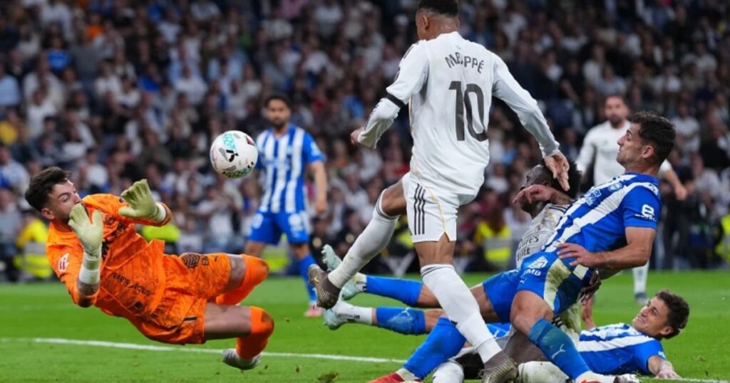 ম্যাচের শুরুটা রিয়ালের জন্য সহজ ছিল না। প্রথমার্ধে আলাভেস বেশ কয়েকবার আক্রমণ করায় বার্নাব্যুর দর্শকরা উদ্বিগ্ন হয়ে ওঠেন। তবু ম্যাচের ৩০ মিনিটে ডেডলক ভাঙেন কিলিয়ান এমবাপ্পে। তাঁর শট এক প্রতিপক্ষ ডিফেন্ডারের শরীরে লেগে পথ বদলে বল জালে গড়ায় এবং রিয়াল এগিয়ে যায়। ফেব্রুয়ারি মাসের পর লা লিগায় এটি এমবাপ্পের প্রথম গোল; চলতি মৌসুমে তাঁর গোলসংখ্যা এখন ২৪।