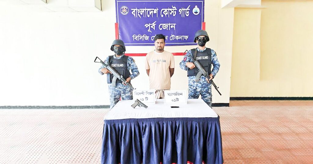 আটক ব্যক্তি হলেন মো. ইয়াসিন, টেকনাফ সদর ইউনিয়নের মহেশখালিয়া পাড়া এলাকার বাসিন্দা। কোস্ট গার্ড সূত্রে জানা গেছে, মহেশখালিয়া পাড়া এলাকায় গত বৃহস্পতিবার গভীর রাতে গোপন অভিযান চালিয়ে তাকে আটক করা হয় এবং তার কাছ থেকে একটি বিদেশি উৎপত্তির পিস্তল জব্দ করা হয়।