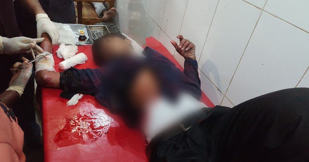 আহতরা হলেন— মোল্লাপাড়া এলাকার ওয়াসিমের ছেলে রিয়াদ, বাদশা মিয়ার ছেলে বন্ধন এবং বালিয়াচন্ডি এলাকার আব্দুল সবুরের ছেলে ইমরান। স্থানীয়রা আহতদের উদ্ধার করে দ্রুত চিকিৎসার জন্য নেওয়ার সময় রিয়াদ ও বন্ধনের অবস্থা আশঙ্কাজনক হওয়ায় তাদের শেরপুর জেলা সদর হাসপাতালে উন্নত চিকিৎসার জন্য ভর্তি করা হয়। ইমরানকে প্রাথমিক চিকিৎসার জন্য হাসপাতালে নেয়া হলে পুলিশ তাঁকে সেখান থেকে আটক করে থানায় নিয়ে যায়।