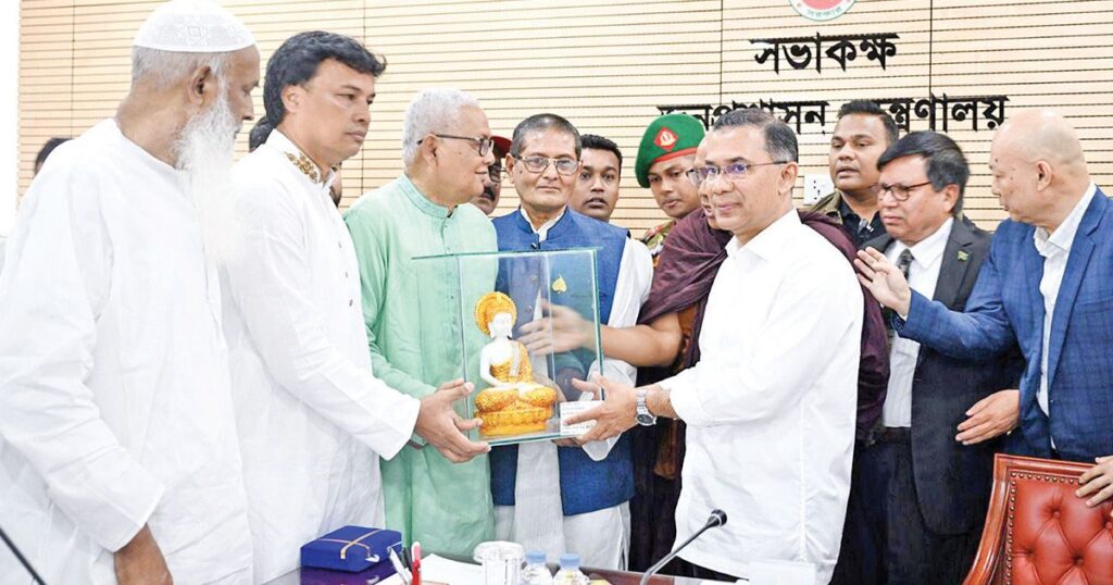 প্রধানমন্ত্রী তারেক রহমান বলেছেন, দলমত ও ধর্ম-বর্ণ নির্বিশেষে দেশের প্রতিটি মানুষ যেন শান্তি ও নিরাপত্তার মধ্যে বসবাস করতে পারে—এমন পরিবেশ নিশ্চিত করতে সরকার দৃঢ়প্রতিজ্ঞ। বৃহস্পতিবার (৩০ এপ্রিল) সকাল ১০টায় সচিবালয়ের মন্ত্রিপরিষদ বিভাগের জনপ্রশাসন সভাকক্ষের অনুষ্ঠানে শুভ বৌদ্ধ পূর্ণিমা উপলক্ষে বৌদ্ধ সম্প্রদায়ের নেতাদের সঙ্গে শুভেচ্ছা বিনিময়কালে তিনি এই কথা জানান।