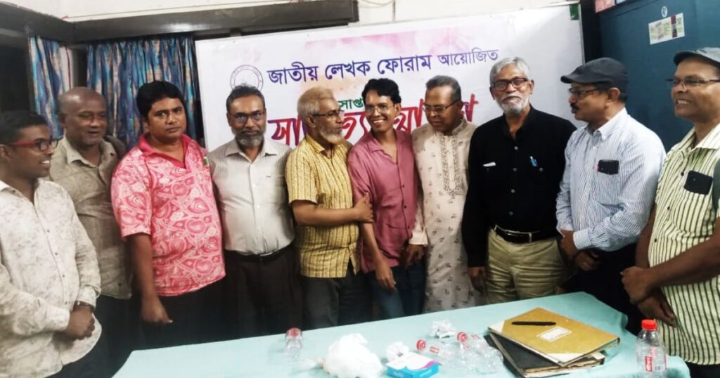 জাতীয় লেখক ফোরাম আয়োজিত সাপ্তাহিক সাহিত্য আড্ডা সম্প্রতি অনুষ্ঠিত হয়েছে। এই অনুষ্ঠানে উপস্থিত ছিলেন সংগঠনের সভাপতি ড. দেওয়ান আযাদ রহমান, মহাসচিব কবি-কথাসাহিত্যিক জাহাঙ্গীর হোসাইন এবং উপদেষ্টা মণ্ডলীর সদস্য মো. আবদুল মান্নানসহ দেশের খ্যাতিমান লেখকগণ। অনুষ্ঠানের সূচনা হয় একটি প্রাণবন্ত সামনা-সামনি আড্ডার মাধ্যমে। এই সাহিত্য আড্ডা তিনটি পর্বে বিভক্ত ছিল, যেখানে প্রতিটি পর্বে চারজন কবিকে মঞ্চে ডাক করা হয়। কবিরা নিজেদের গুরুত্বপূর্ণ বক্তব্য ও কবিতা পাঠ করেন এবং পুরো অনুষ্ঠানের পরিচালনা করেন কবি-কথাসাহিত্যিক জাহাঙ্গীর হোসাইন। অনুষ্ঠানের মধ্যমে সাহিত্যপ্রেমীরা একত্রিত হন, নতুন কবিতা ও লেখালেখির ভাবনা বিনিময় করেন, যা সাহিত্য চর্চায় নতুন প্রাণের সঞ্চার করে।
