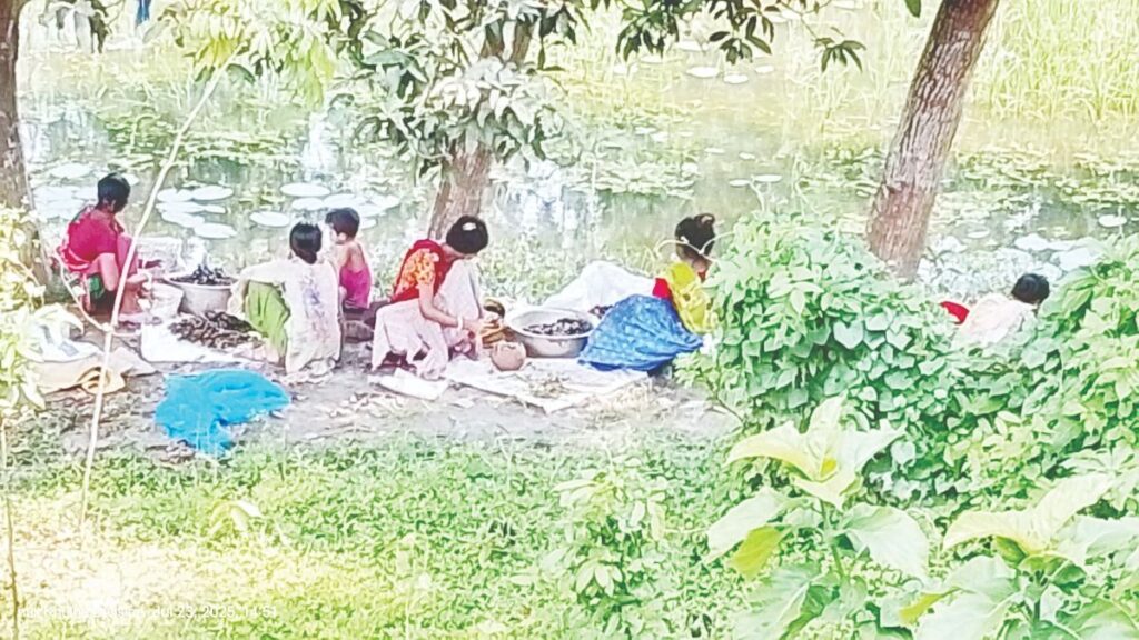 অন্যদিকে, চাচুড়ি গ্রামের খুশি রানী মালো জানান, ভোরের আলো ফুটতেই সে তালের ডোঙা নিয়ে দ্রুত জলাশয়ে যায়। সেখানে শামুক ও ঝিনুক সংগ্রহ করে পরিবারের সদস্যদের সঙ্গে ফিরে আসে। তারা এসব শামুকের ভিতরে থাকা ঘিলু ও মাংশ আলাদা করে ব্যবসায়ীদের কাছে বিক্রি করে। তিনি বলেন, ‘আমরা এই উপার্জন দিয়ে জীবন চালাই। শুনেছি, এই শামুক ও ঝিনুক দিয়ে চুনও তৈরি হয়।’