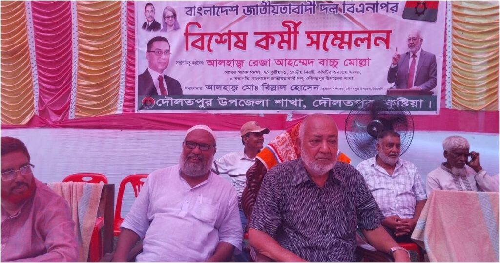 বিএনপির ভারপ্রাপ্ত চেয়ারম্যান তারেক রহমানের ঘোষিত ৩১ দফা বাস্তবায়নের পাশাপাশি আসন্ন জাতীয় সংসদ নির্বাচনকে সফল করতে তৃণমূল নেতাকর্মীদের ঐক্যবদ্ধভাবে কাজ করার আহ্বান জানিয়েছেন কুষ্টিয়া-১ (দৌলতপুর) আসনের মনোনয়নপ্রত্যাশী সাবেক সংসদ সদস্য ও উপজেলা বিএনপির সভাপতি রেজা আহমেদ বাচ্চু মোল্লা। বৃহস্পতিবার সকালে থানার মোড় এলাকায় উপজেলা বিএনপির উদ্যোগে আয়োজিত এক কর্মী সম্মেলনে তিনি এ কথা বলেন।