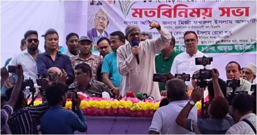 বাংলাদেশ জাতীয়তাবাদী দল বিএনপির মহাসচিব মির্জা ফখরুল ইসলাম আলমগীর সম্প্রতি ঠাকুরগাঁওয়ে এক সভায় বলেছেন, ‘শতফুল ফুটতে দাও’। এই কথার মাধ্যমে তিনি দেশের সার্বভৌমত্ব ও গণতান্ত্রিক মূল্যবোধের প্রতি আস্থা প্রকাশ করেছেন। বুধবার (১৫ অক্টোবর) জেলা সদর উপজেলার গড়েয়া ইউনিয়নের এক সমাবেশে তিনি বক্তব্য দেন, যেখানে ইউপি পরিষদ সদস্য, স্থানীয় শিক্ষক, মুসলিম ও হিন্দু সম্প্রদায়ের নারী-পুরুষ, রাজনীতিবিদসহ নানা শ্রেণিপেশার মানুষ উপস্থিত ছিলেন।
