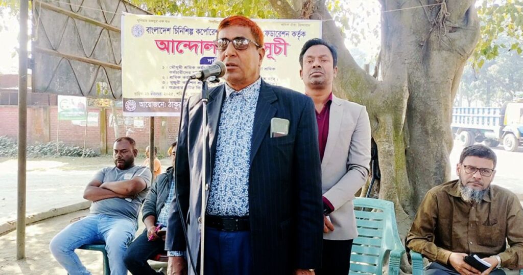 ঠাকুরগাঁওয়ে চার দফা দাবিতে চিনিকল শ্রমিকদের আন্দোলনের ঘোষণা