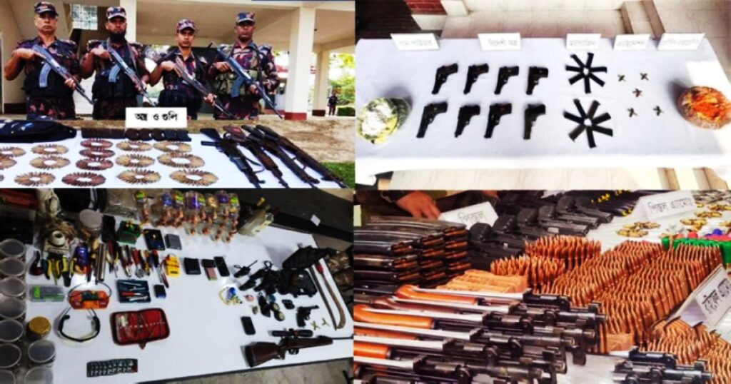 আসন্ন জাতীয় সংসদ নির্বাচনকে বানচাল করতে অস্থিতিশীল পরিস্থিতি সৃষ্টির লক্ষ্য নিয়ে ভারতের বিভিন্ন সীমান্ত দিয়ে বিপুল পরিমাণ অস্ত্র দেশে প্রবেশের চেষ্টা চলছে। দেশের বিভিন্ন সীমান্ত পয়েন্টে, অন্তত ১৮টি স্থানে এই চুরাচালান চলছে বলে স্বরাষ্ট্র মন্ত্রণালয় ও গন্তব্যস্থলের গোয়েন্দা সংস্থাগুলোর রিপোর্টে দেখা গেছে। ইতিমধ্যে, চাঁপাইনবাবগঞ্জের সীমান্তে বাংলাদেশ সীমান্তরক্ষী বাহিনী (বিজিবি) তিনটি আগ্নেয়াস্ত্র ও ছয় রাউন্ড গুলি উদ্ধার করেছে, যা খুবই উদ্বেগজনক। বিজিবি জানিয়েছে, কঠোর নজরদারির পাশাপাশি সর্তকতা সত্ত্বেও অবৈধ অস্ত্রসমূহ ফাঁক গলে দেশের ভিতরে প্রবেশ করে যাচ্ছে। বিশেষ করে চাঁপাইনবাবগঞ্জ, সাতক্ষীরা, যশোর, কুমিল্লা ও কক্সবাজার সীমান্তে এই ধরনের চোরাচালান বেশি ঘটছে। পাশাপাশি, পাহাড়ি অঞ্চলের বাইরেও এবং সাগর-পথ অবলম্বনে অস্ত্রের চালান আসছে বলে জানা গেছে। এসব সীমান্ত দিয়ে পণ্যহিসাবে ছোট ছোট অস্ত্র আসছে, যা দেশের অস্ত্রের গুদামধারার জন্য উদ্বেগের কারণ হয়ে দাঁড়িয়েছে। স্বরাষ্ট্র মন্ত্রণালয় থেকে বিজিবির জন্য এই বিষয়ে নির্দেশনা দেওয়া হয়েছে এবং সীমান্তে কড়া নজরদারি অব্যাহত রয়েছে।