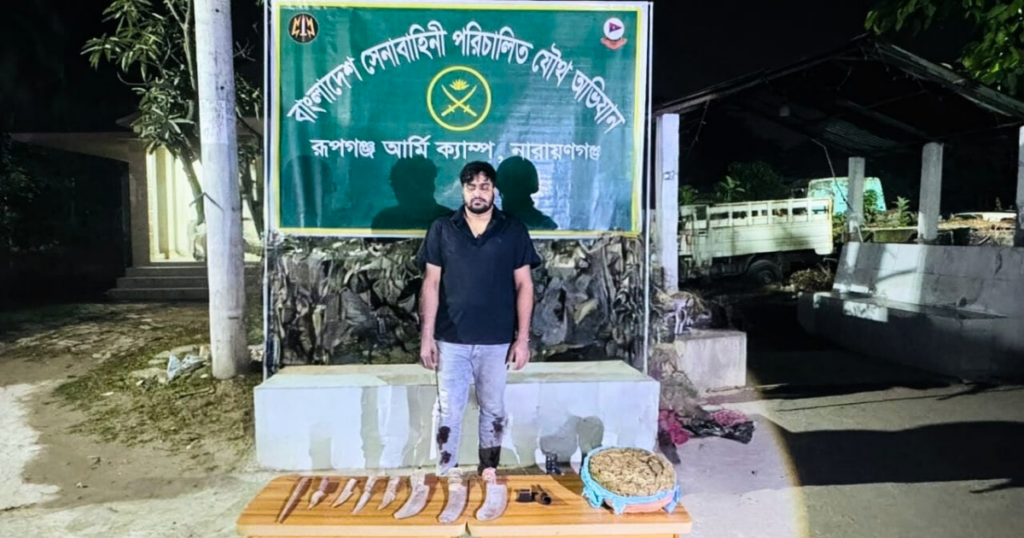 অপরদিকে, রূপগঞ্জ থানার অফিসার ইনচার্জ (ওসি) তারিকুল ইসলাম বলেন, সেনাবাহিনীর হাতে ধরা পড়া সোহাগ মিয়াকে থানায় হস্তান্তর করা হয়েছে। তার কাছ থেকে উদ্ধার হওয়া অস্ত্র ও মাদকের মামলায় প্রয়োজনীয় আইনগত ব্যবস্থা নেওয়া হচ্ছে।