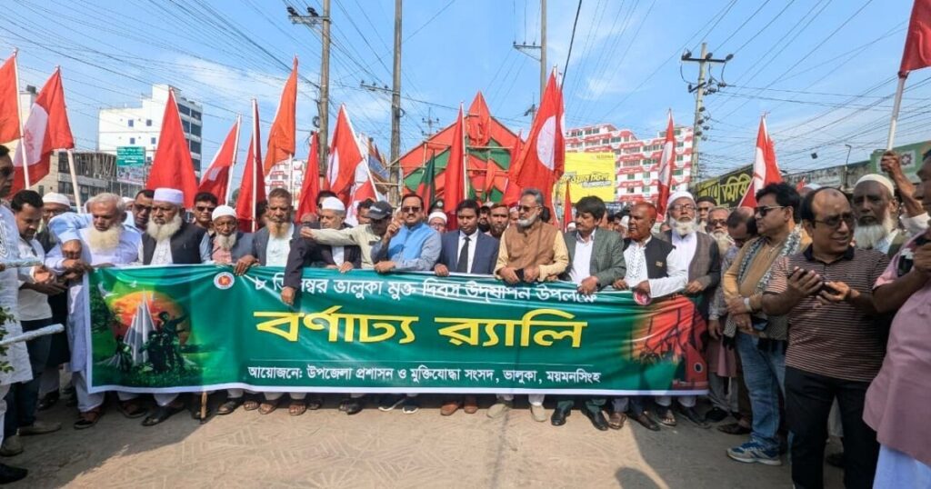 ময়মনসিংহের ভালুকায় যথাযোগ্য মর্যাদা ও শ্রদ্ধার সঙ্গে পালিত হয়েছে ‘ভালুকা মুক্ত’ দিবস। সোমবার (৮ ডিসেম্বর) সকাল ১১টায় উপজেলা প্রশাসনের উদ্যোগে এ অনুষ্ঠানের আয়োজন করা হয়। দিবসটি উপলক্ষে একটি বর্ণাঢ্য র্যালি, পুষ্পস্তবক অর্পণ ও দোয়া-মোনাজাতের আয়োজন করা হয়।